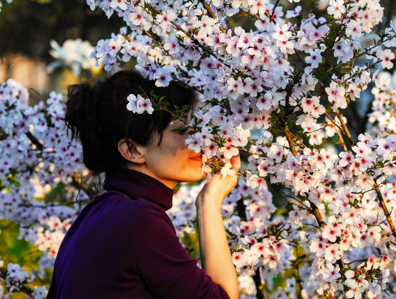 Molto belle le sfumature di luce, il vero punto forte della scena , in una insieme che si fa radioso e brillante. Una primavera senza esitazioni, che mostra abbondanza di petali e gemme, mentre la protagonista si cela parzialmente nella fioritura, annusando la primavera in boccio.