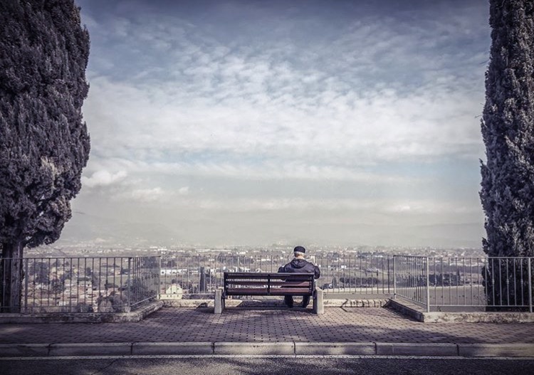 Come in un teatro, il sipario si apre sulla scena. E la scena è quiete assoluta, a perdita d'occhio. E l'uomo che si riposa sulla panchina contribuisce alla sensazione di pace.