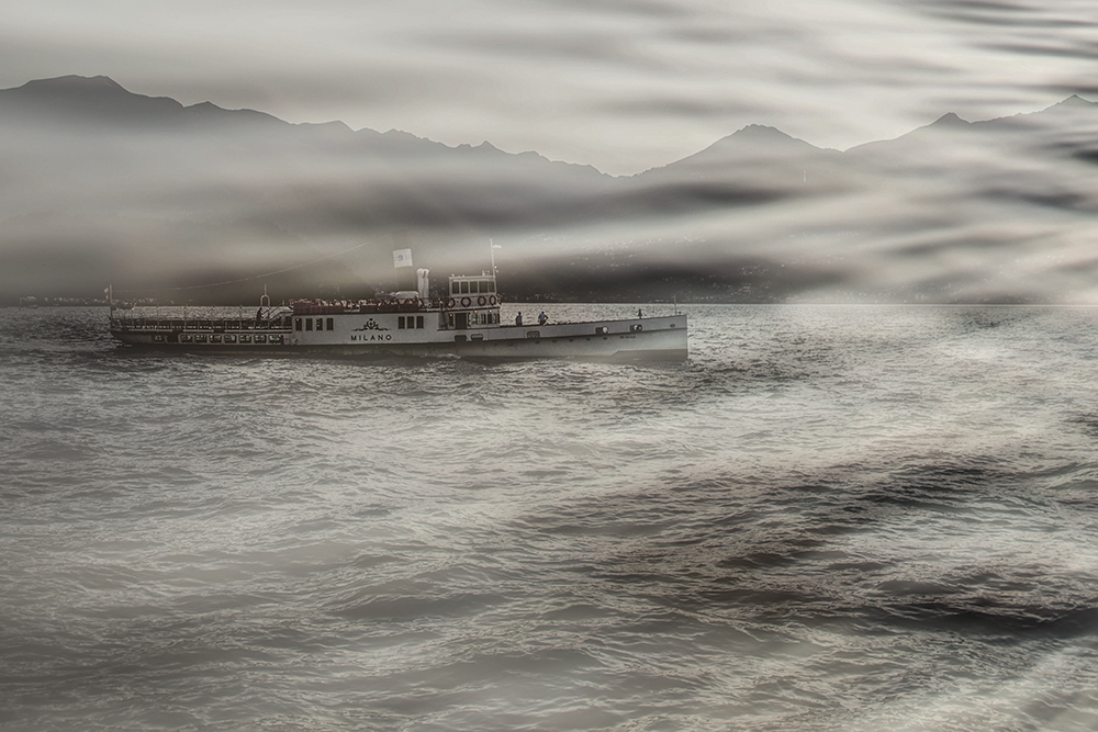 Stupenda visione dove foschia e moto ondoso si fondono. Forse eri in movimento anche tu su un'altra imbarcazione ...