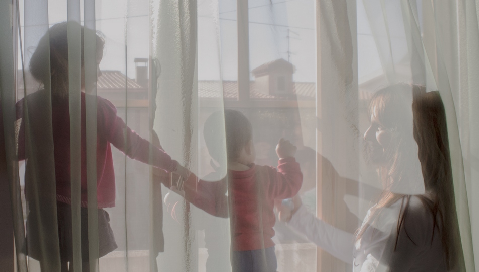 Mi piace moltissimo la trasparenza della tenda che crea un delicato vedo non vedo morbido che ben accompagna la tenera scena ripresa.