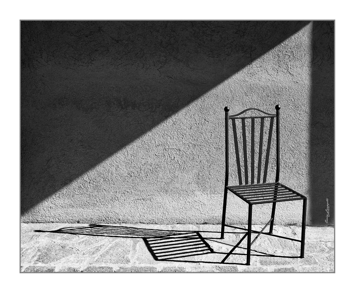 Non resta altro che scegliere la sedia preferita, a cui appoggiarsi, fra ombra e realtà, fra due mondi alternativi ma congiunti, a cui i due triangoli di ombra e luce , così materici, regalano la perfetta giustificazione ambientale. Stellina.