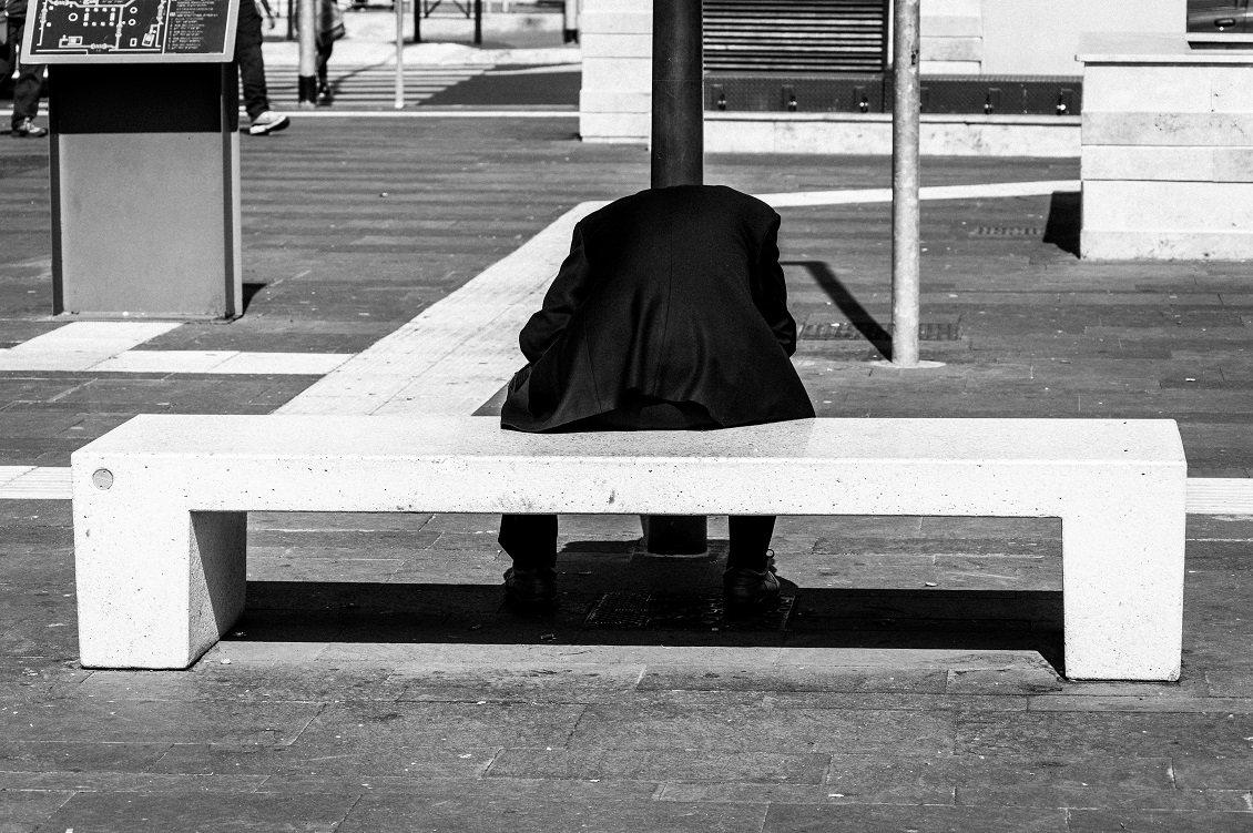 Che occhio hai!! Un ottimo bn per un immagine estremamente efficace. Abche l'ombra del palo a dx non sembra casuale,è come un dito che pungola la spalla dell'uomo,per accertarsi sia tutto ok.
