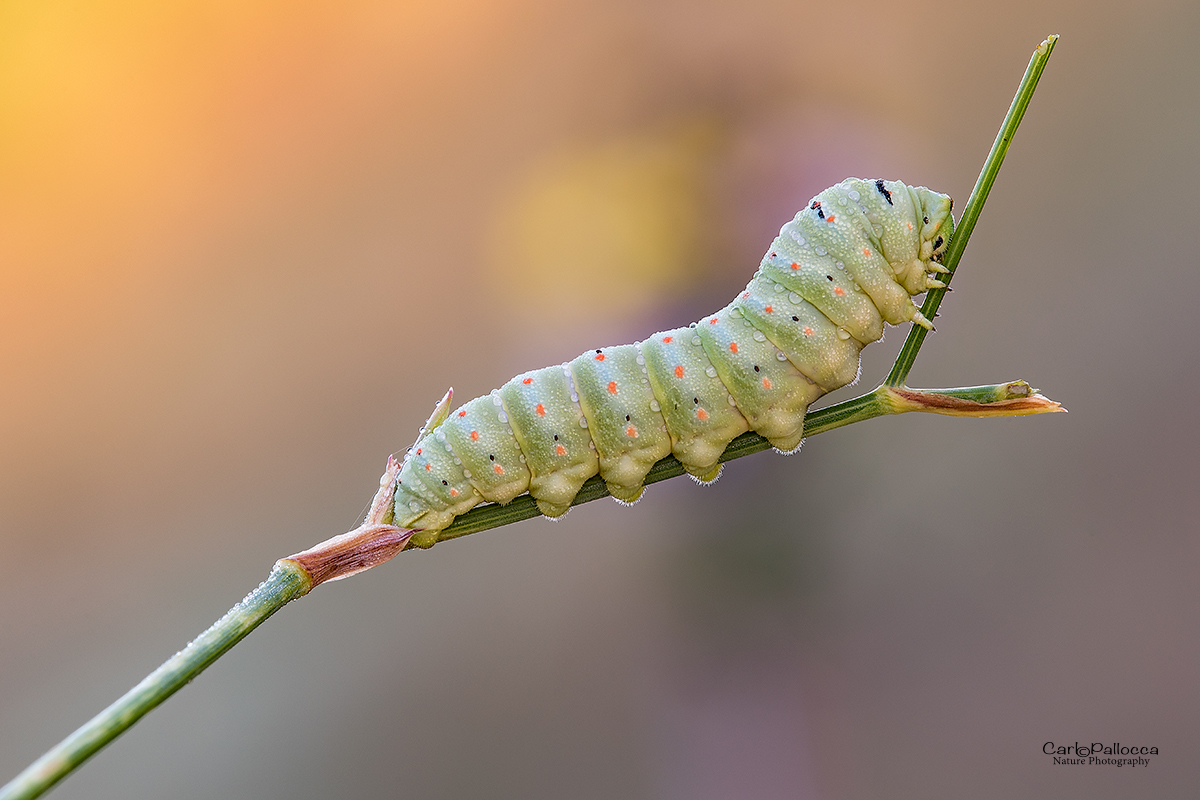 | Ciao Carlo, bella composizione con il posatoio in diagonale che ospita il bruco. La MAF sull'animaletto è splendida come anche la sfocatura e cromie dello sfondo.Complimenti |