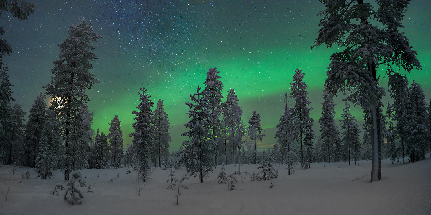Quella sera ci addentrammo nel bosco in sella alle motoslitte. Dopo quasi un'ora di viaggio, la guida ci fece fermare le motoslitte, spegnere luci e motori e ci disse: adesso alzate gli occhi al cielo.