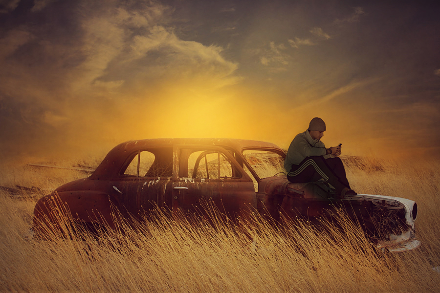 Hai applicato un livello solo per la luce con un bel click di grandi dimensioni dietro alla macchina e al soggetto. Restando quindi a quanto la luce doveva illuminare, trovo coerente il tetto della macchina ma anche qui, sull'uomo non ci siamo del tutto. Per come l'hai aggiunta e , riflettendo - giustamente- sulla parte davanti del parabrezza , la stessa doveva investire parte della felpa del ragazzo, il suo cappello, sempre nella parte alta, il cellulare e le dita coinvolte in quella direzione. In tal misura, anche il soggetto sarebbe amalgamato di piu alla scena di cui ti parlavo sopra