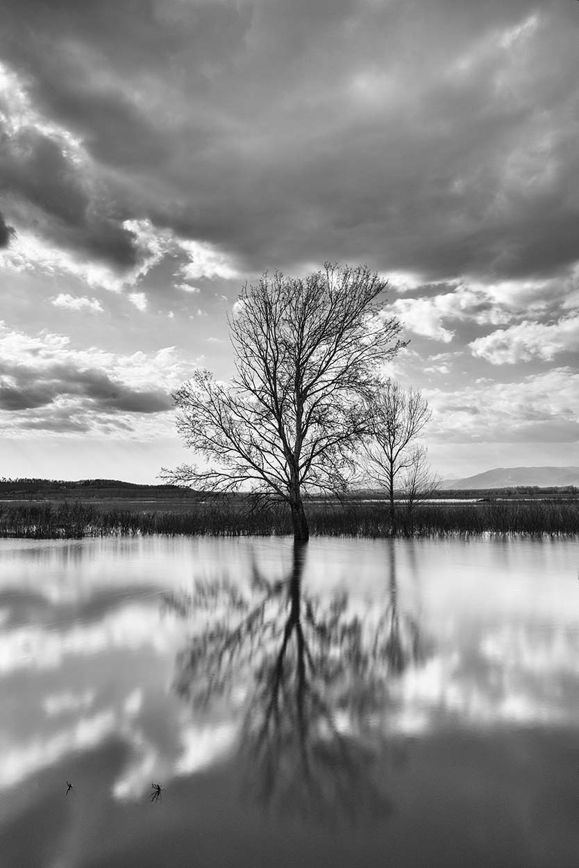 Mi è piaciuta appena vista. Un BN ben dosato e bellissimo il riflesso dell'albero protagonista