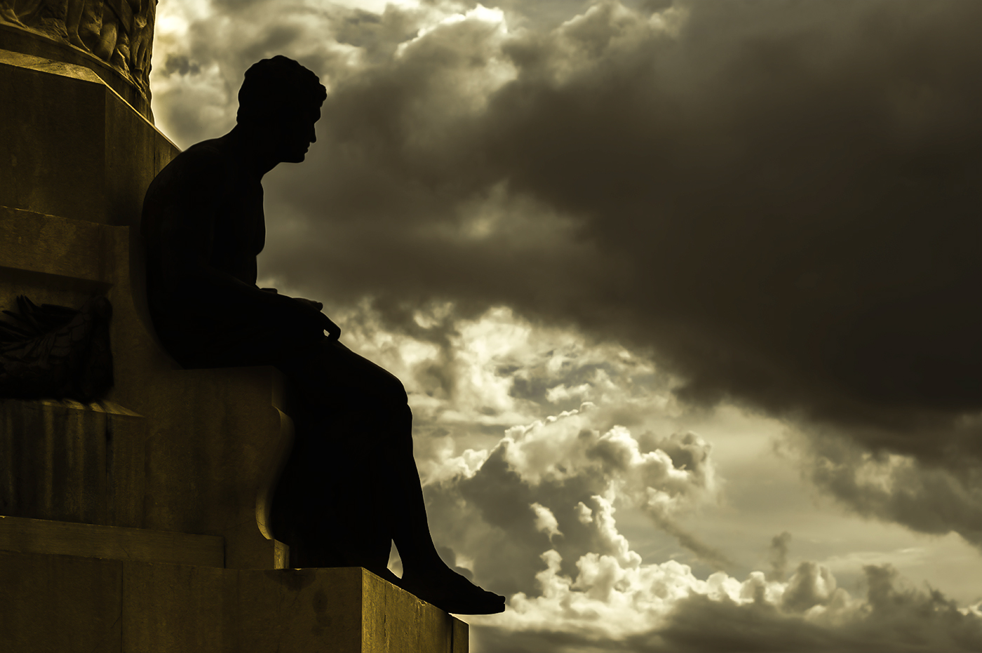 un cielo cupo in sintonia con la statua che sembra oppressa da tristi pensieri crea un'atmosfera suggestiva ed emozionante. Mi piace moltissimo