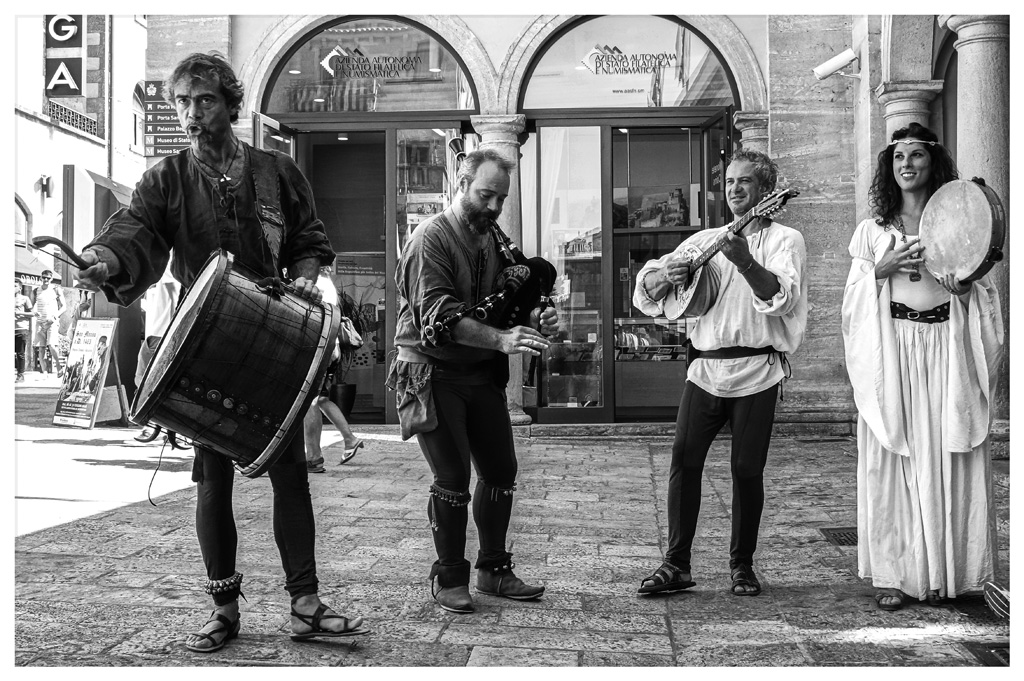 Circa la foto, credo che l'espressione molto curiosa dell'uomo con il tamburo meritasse uno scatto tutto suo. La scena nell'insieme è gradevole ma non va oltre la semplice illustrazione didascalica.
