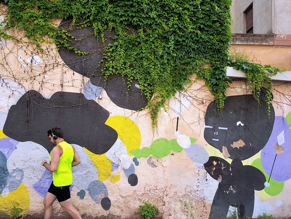 | Il podista pare anch'esso un murales. Bei colori accesi |