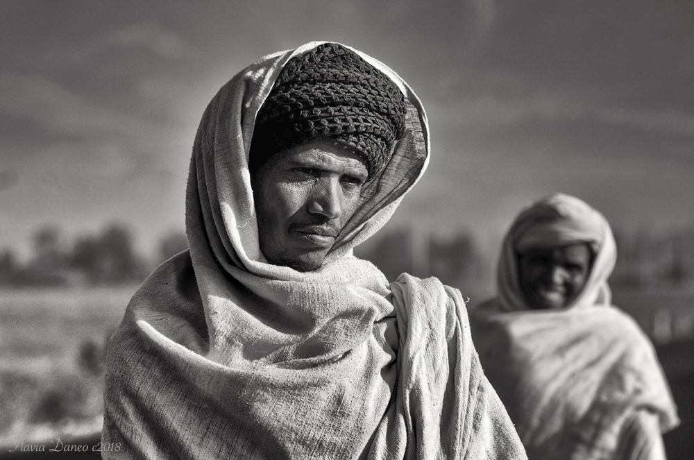 Volti che paiono scolpiti in materia fotografica, segnati con forza non solo dalle ombre ma dal tempo. Mi piace molto la doppia presenza, lui e lei, chi con un austero cipiglio in pp, chi con legegrezza davanti ala ripresa e cn un sorriso pieno fuori campo. Contrasti e coesistenze che hanno quacosa di universalmente leggibile.
