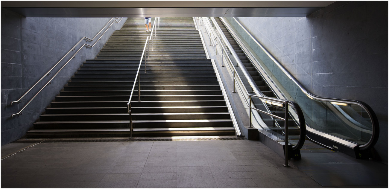 Grazie a tutti per i graditissimi commenti! La presenza umana con il taglio del busto è voluta, a dire la verità speravo in un effetto d'ombra del soggetto sui gradini. Grazie ancora