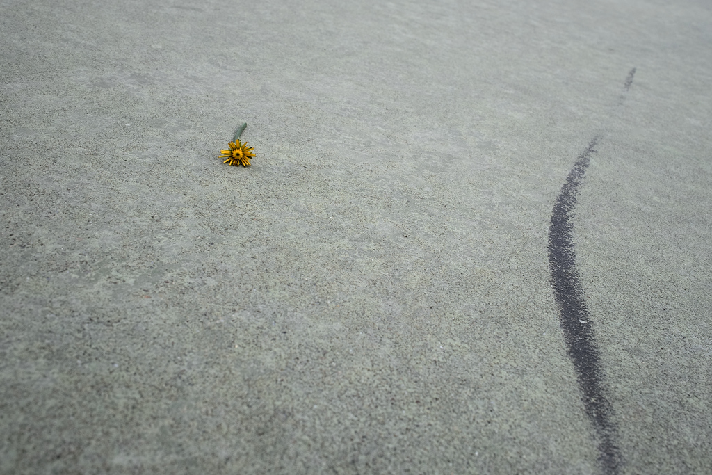 Una sgommata e un fiore spezzato. Potrebbero essere simboli di qualche brutta storia. Ma anche così, solo piccole tracce senza relazione, in quel gran magma grigio, generano una bella immagine. Minimalissima e interessante.  _________________ Alessandro Cucchiero 🐾 |