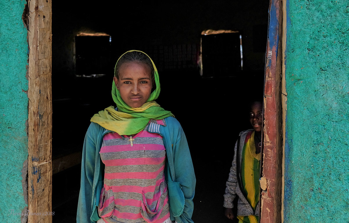 E' una grande dedica quella che mi fai perchè questo scatto mi ha colpito molto fin da subito e te ne ringrazio e per avermelo dedicato e per averlo messo a commento singolarmente. Hai colto un bellissimo sguardo fanciullesco, lei ti osserva fiera e porta con se quella croce che è simbolo si di sofferenza ma sopratutto speranza e fede. Bellissime le cromie, dove i colori indossati dalla bella ragazza richiamano quelle delle mura che la circondano. Completa questa gran bella proposta l'espressione allegra e gioiosa del ragazzino dietro di lei e quelle lame di luce che le sbucano dietro la nuca. Beh flavia lo ribadisco anche qui, fino ad ora questo è "per me" in assoluto il tuo ritratto più bello che hai presentato su questo portale, è un piccolo gioello fotografico, custodiscilo gelosamente perchè per me hai fatto uno scatto stile Mccurry...
