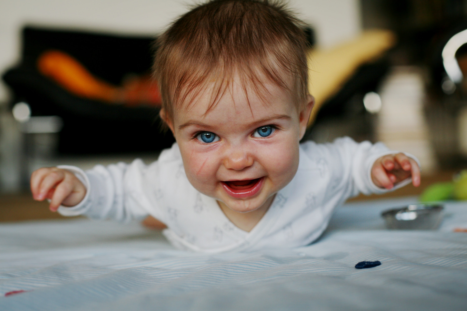 Un momento di gioco in famiglia con la piccolina che sembrava volare sul tappeto. Per accentuare l'effetto "sospensione" ho deciso di tagliare/incollare la zucchetta sul bordo superiore.