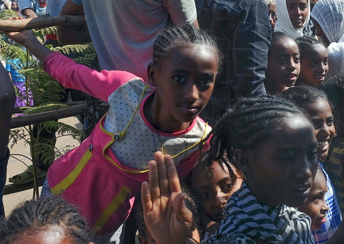 Con il pulmino imbottigliato tra la folla la curiosità era reciproca.