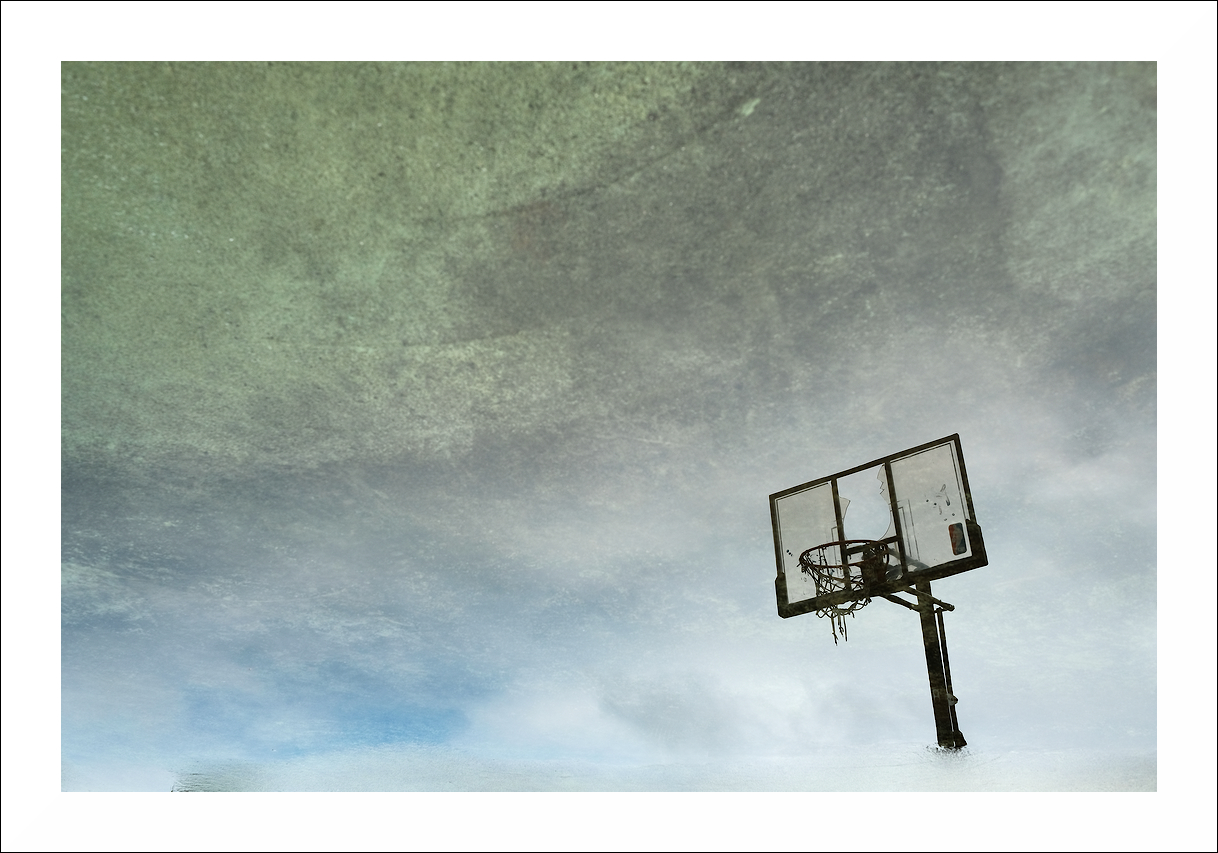 Realtà sospesa come in un sogno, grazie all’elemento liquido ed un cielo perfetto, riesci a fare letteralmente volare un vecchio e decrepito canestro.