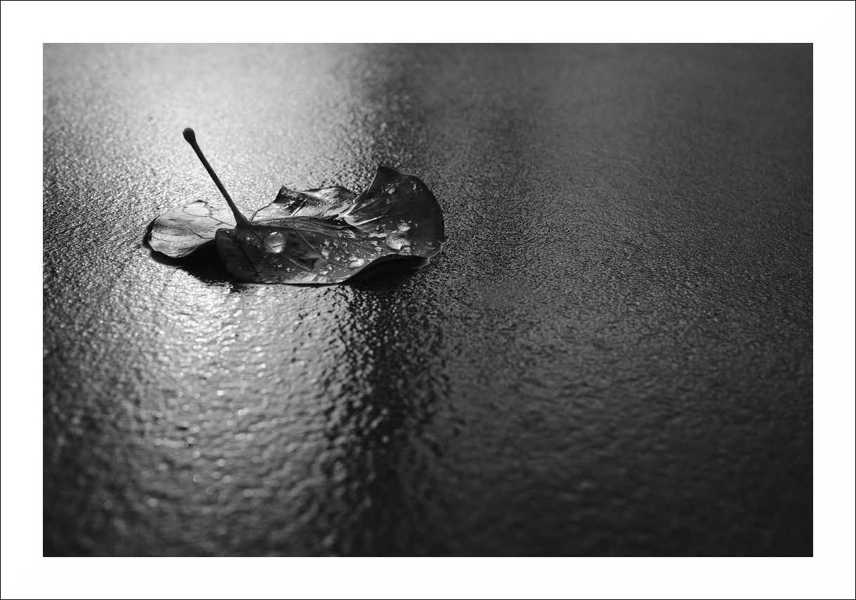 Il BN così ben realizzato valorizza ancora di più lo scatto conferendo tutta la malinconia di una giornata di pioggia che si somma ad una vita (quella della foglia) che è finita.  _________________ Giuseppe Zizzi |