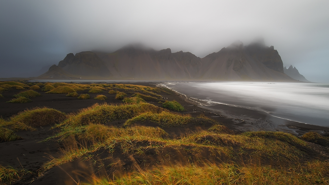 Sono stato 2 volte a Stokksness celeberrimo posto, nell'Est dell'Islanda. La prima volta ho trovato venti a 200 km/h, esperienza indimenticabile, ho sperimentato cosa significasse non riuscire a camminare a causa del vento, e ho tentato di fotografare il vento, fatto esposizione sul 100mo di sec. ma non rendeva, fotografato i cavalli con le zampe impuntate a terra e le criniere mosse dal vento e neanche mi convinceva.