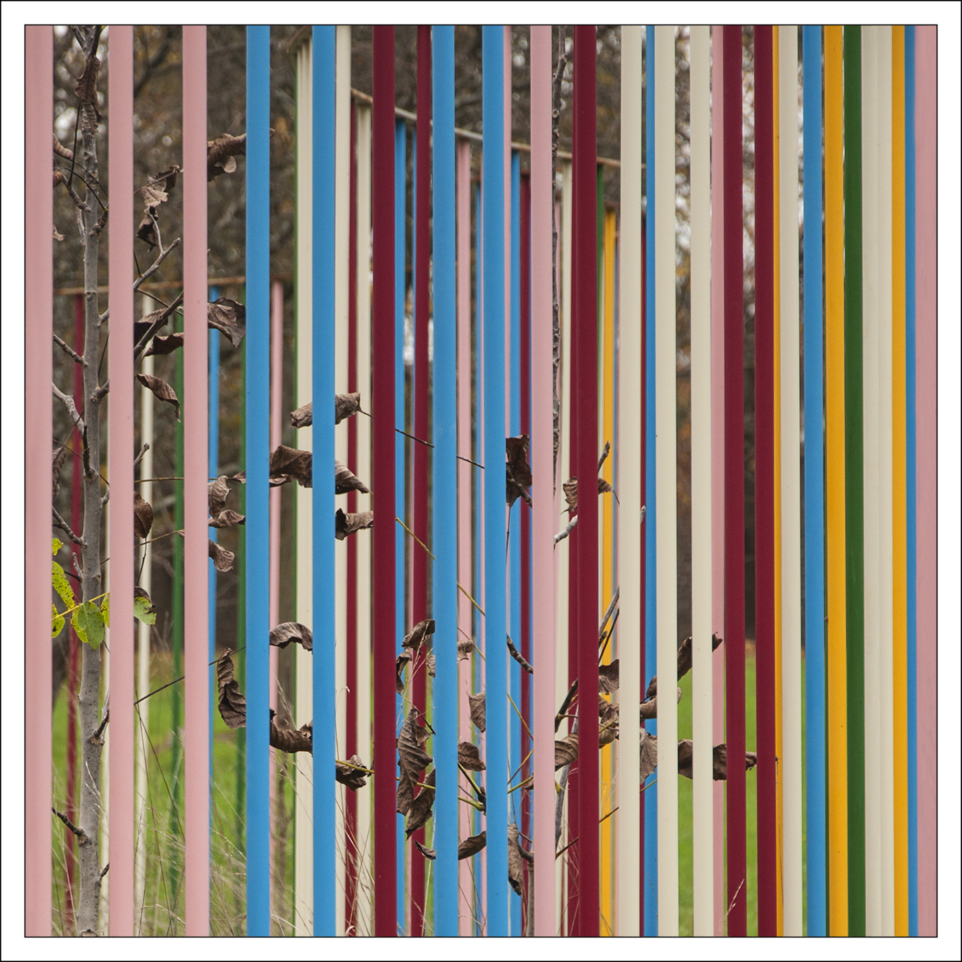 Notevole il contrasto tra le allegre e variopinte sbarre e le morte foglie quasi prigioniere.Un autunno concettuale ottimamente rappresentato,bello anche il formato. Ciao,Sergio.  _________________ Sergio Demitri https://www.flickr.com/photos/124946035@N02/ |