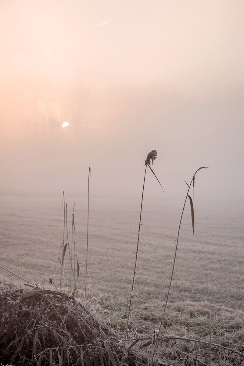 Un piacevole minimal,tra la prima brina..la nebbia ed uno spiraglio di luce..Mi piace. Elis Buon sabato sera.
