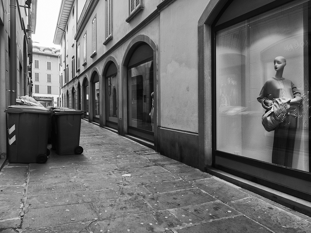 Ho scattato perchè mi piaceva il "contrasto" tra il manichino di un negozio "alla moda" e i cassettoni dell'immondizia nella via. Ho pensato che la sezione "street" fosse quella più adatta per questo tipo di foto ma magari mi sbaglio.