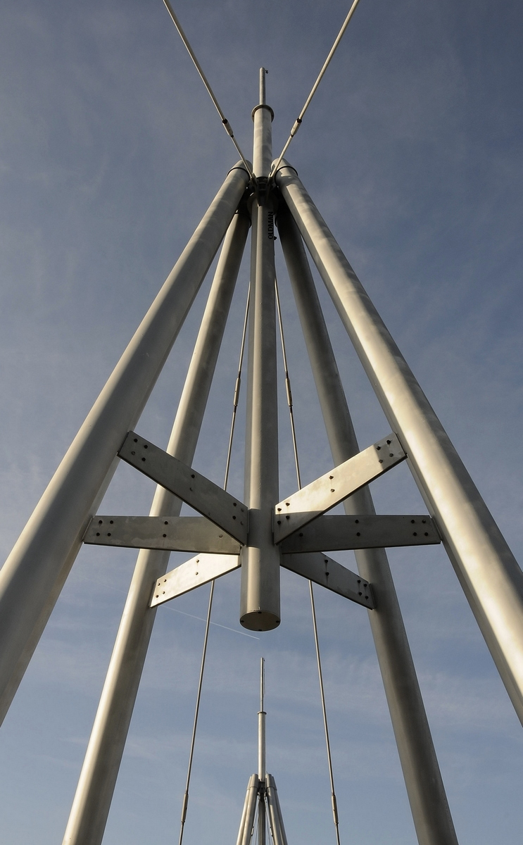 A Marina di Rimini , l'ingresso auto /pedoni è sormontato da una struttura adibita a passaggio pedonale ; sopra a questa struttura i piloni che vi presento anche da quest'altra angolazione :
