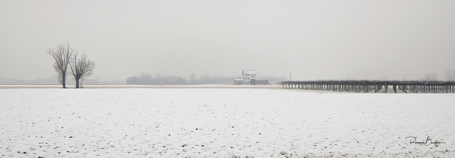 Piacevole scatto e immagine..scena ben realizzata dai due alberi, il casolare ed il vigneto creando un ottima composizione..mi piace molto. Ok! Buon fine di serata. Ciao