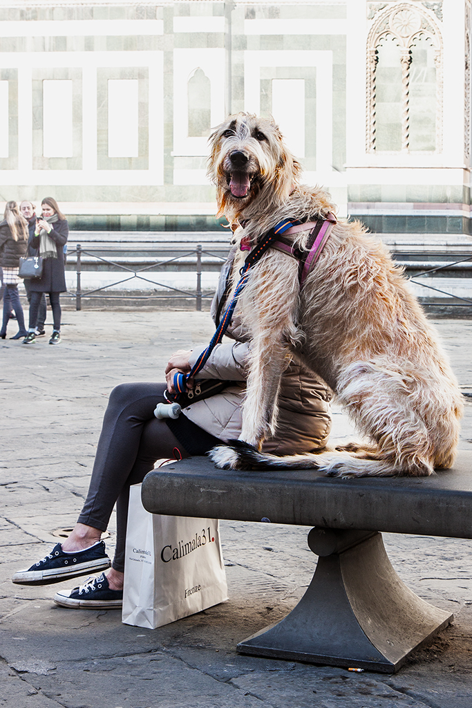 E concordo con Giacomo sul colore, che qui è contenuto in una tavolozza di ampiezza ridotta e molto morbida e la vicinanza cromatica tra il colore del cane e quello della giacca è a servizio della resa complessiva.