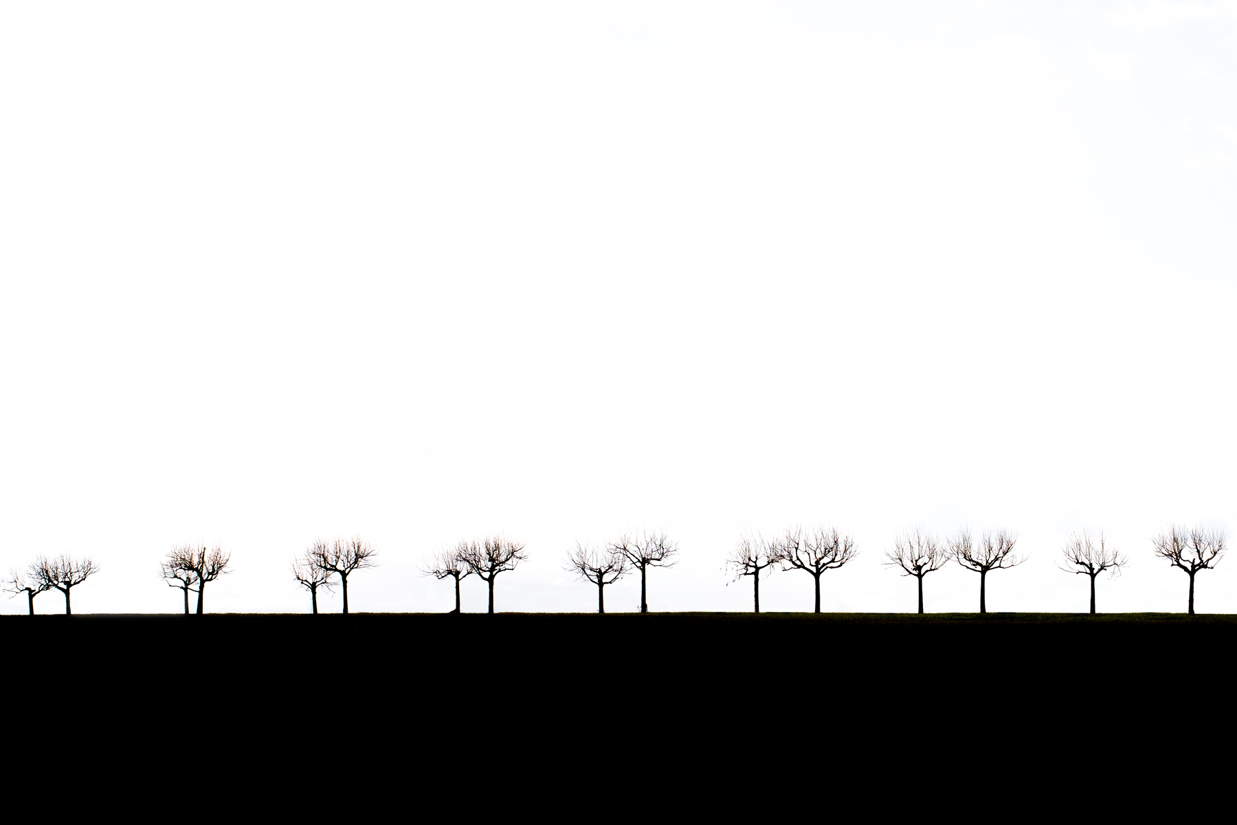 La composizione per come la vedo io ha due opzioni: Tenere lo spessore nero così notevole in basso e tagliare un po' di cielo. Oppure tenere il bianco infinito e ridurre la striscia scura in basso.