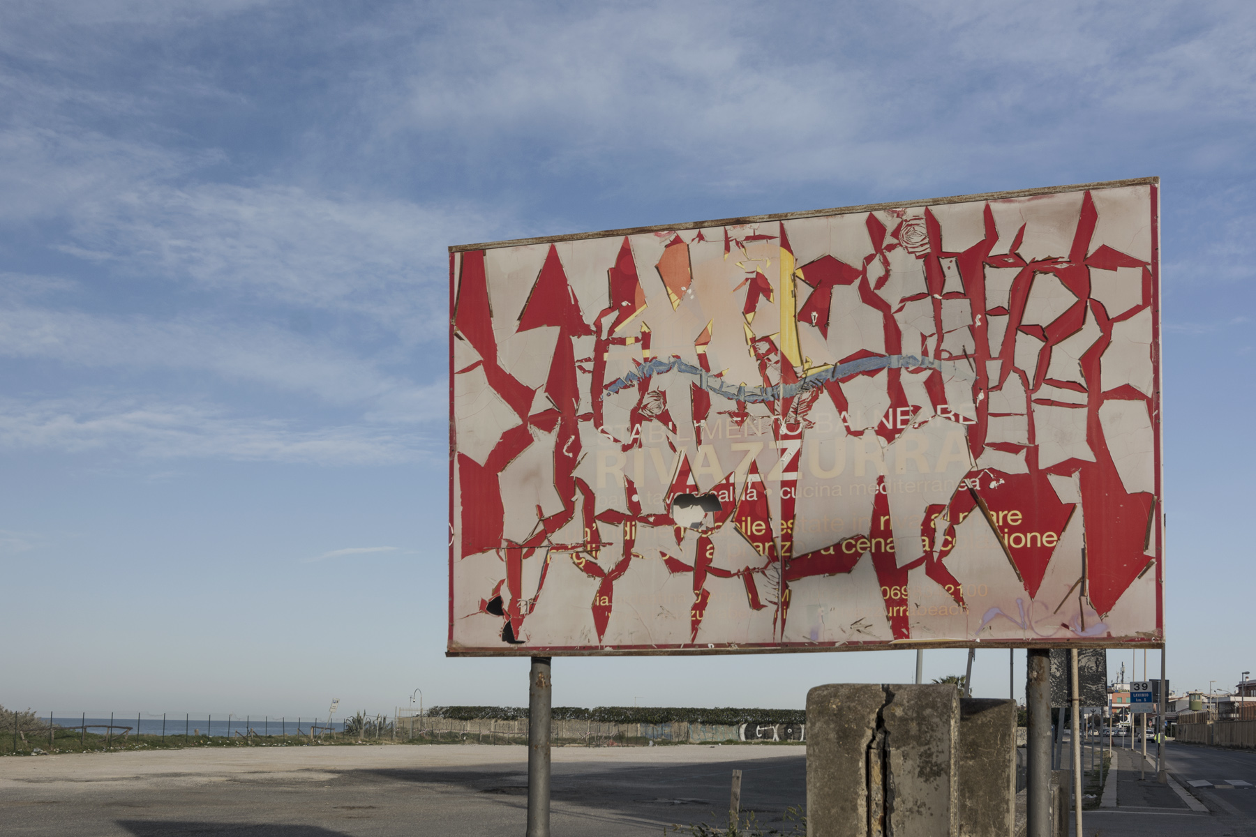 Il cartello mi ha colpito molto perche' ho pensato che per staccare quel materiale, i segni del tempo, credo e non umani, ci vuole molto molto tempo e nessuno credo abbia mai pensato di ricoprirlo in qualche modo.