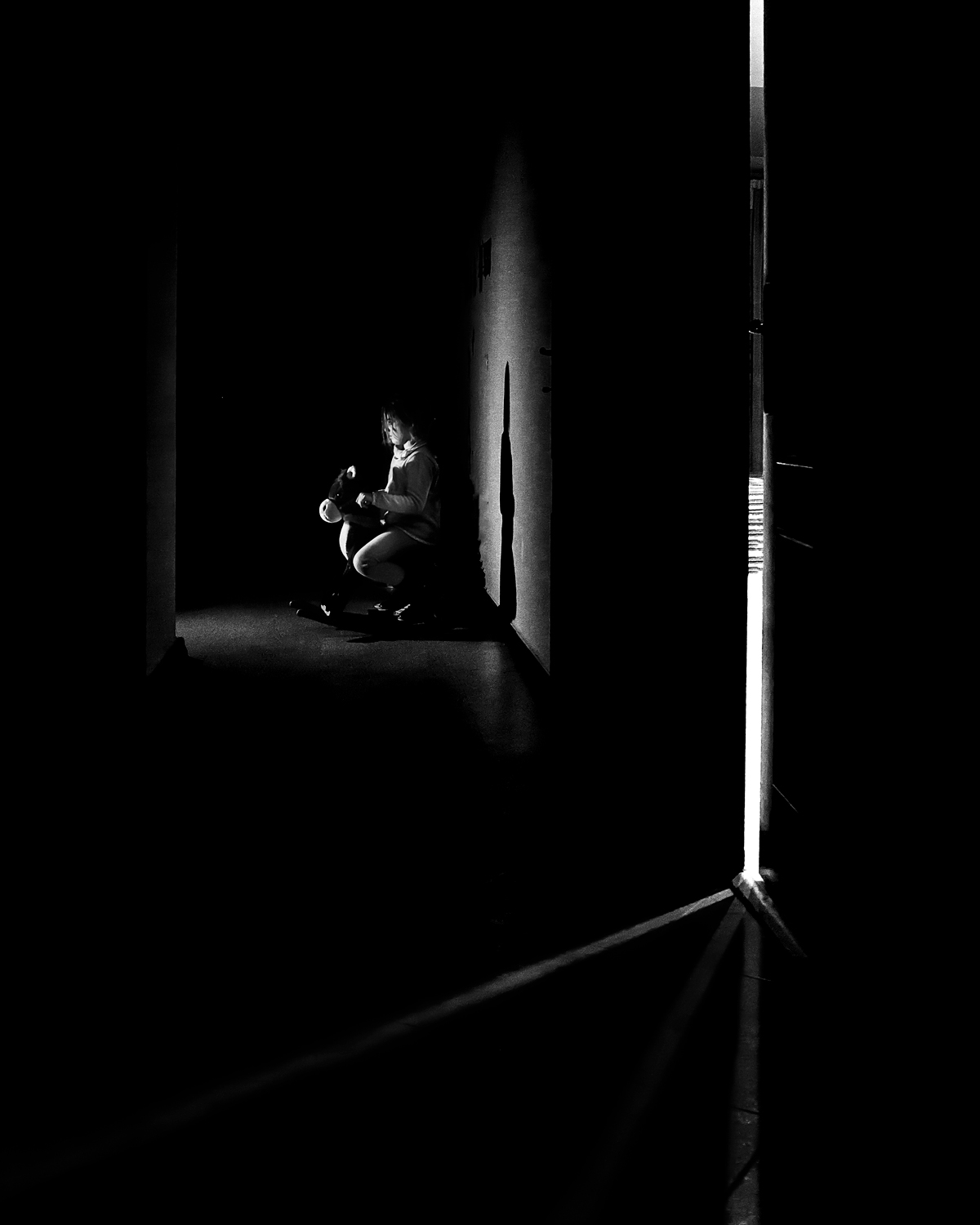 Un semplice gioco con i miei figli (l'altro era nascosto e teneva in mano il flash) per insegnare loro a non aver paura del buio.