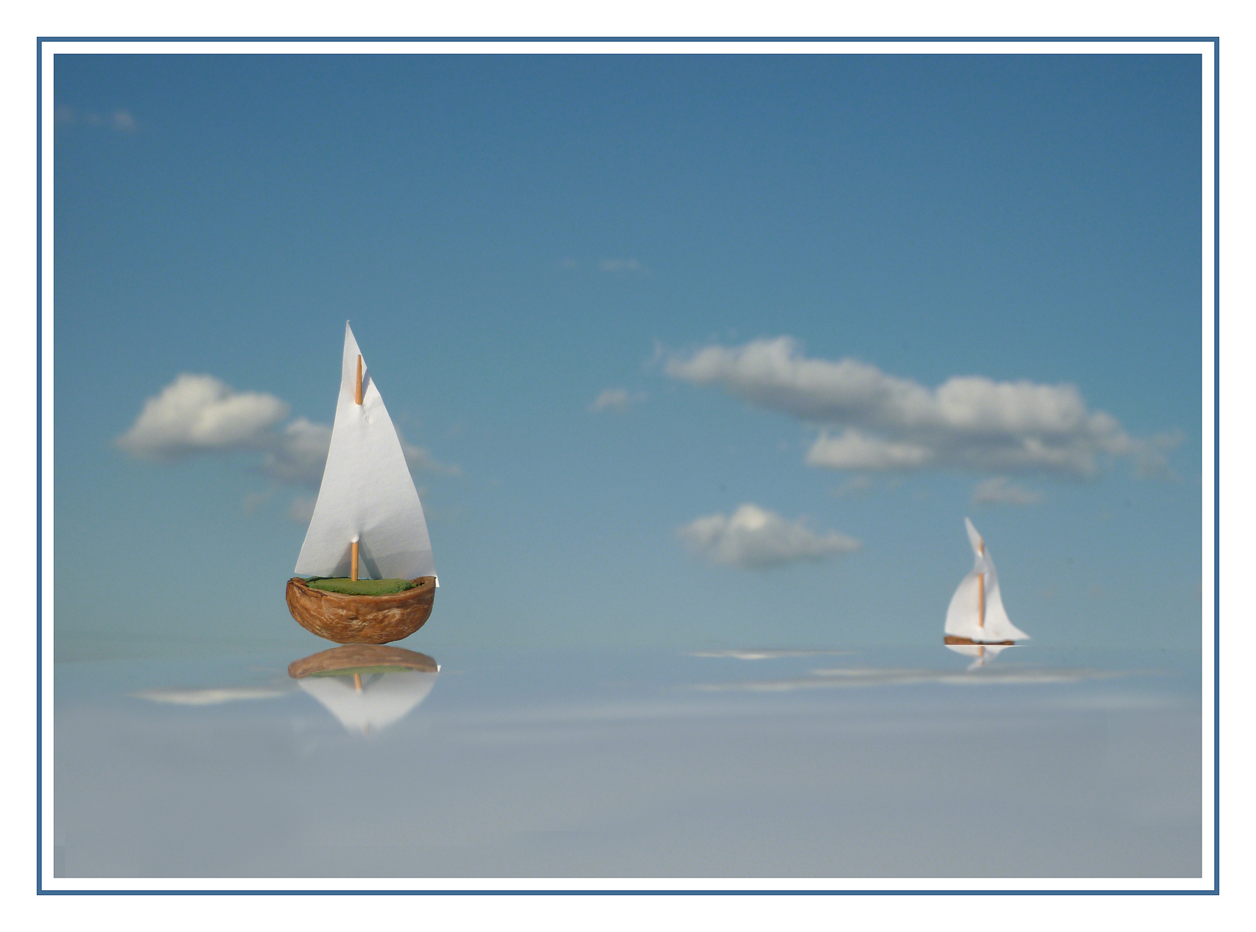 Creatività ai massimi livelli! Tra le due, mi piace di più quella allegata perchè la barchetta è ripresa di scorcio, renderei però un po' più luminoso il cielo. Bravo!