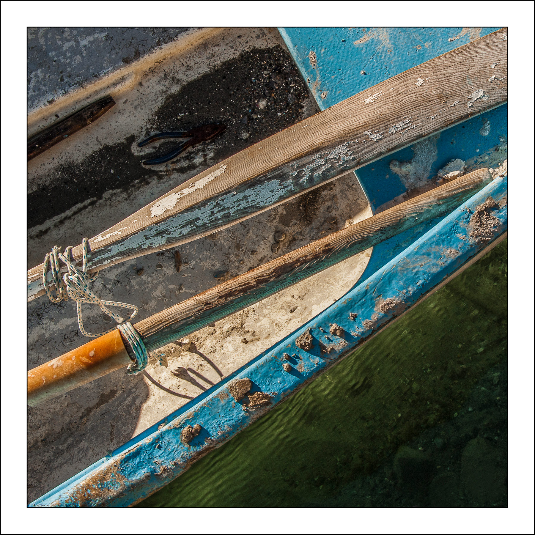 Con la seconda R un altro elemento imprescindibile della marineria.Hai isolato i remi nella loro essenza con una forza compositiva particolare, andando a cercare triangolazioni nelle diagonali, colore vivido pennellato, ombre , concrezioni e luce l'espressione che tutto completa.