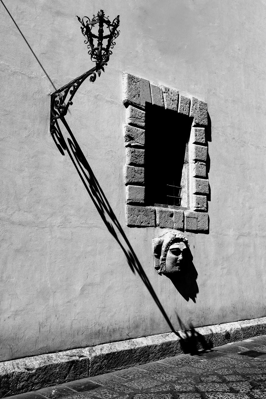 Una bell' ombra lunghissima a fondersi col selciato attraversando il frame. Ben inserita nella composizione ,apprezzo molto le giustificazioni . La finestra prospetticamente meno efficace ,penso allo scatto con un 'ipotetico senza '.