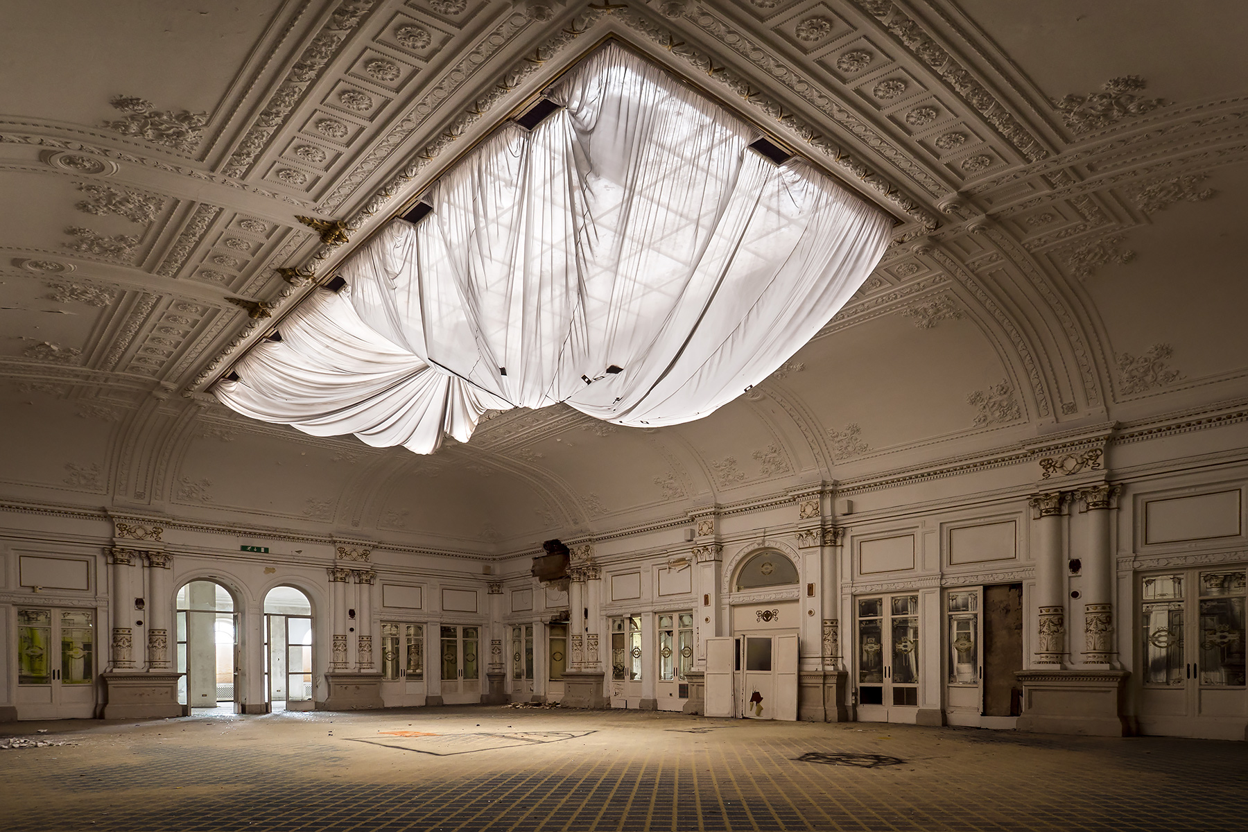 Per la foto ho usato un 9mm (18mm equivalente) il salone è molto grande ed alto per cui farcelo stare tutto era impossibile e mi ha costretto ovviamente a raddrizzare e ritagliare con inevitabili conseguenze sul file. Purtroppo questo posto è stato recentemente parecchio deturpato da scritte e macchie di vernice... Questa è l'inquadratura obbligata per minimizzare il problema.