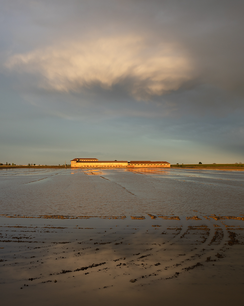 La luce è splendida, la composizione è equilibrata e ogni elemento che va a comporre questa immagine ha il suo valore.la sua piacevolezza. Il pp è ricco,disegnato e accarezzato da una luce calda , impreziosito da questi solchi fangosi,dai riflessi del cielo,ci guida lontano a scoprire il resto del paesaggio,l'edificio dai caldi toni dorati e il suo riflesso che si scioglie tremolante sull'acqua .E poi su tutto un cielo ordinato , ma vivo, coinvolgente. Bella e preferita  _________________