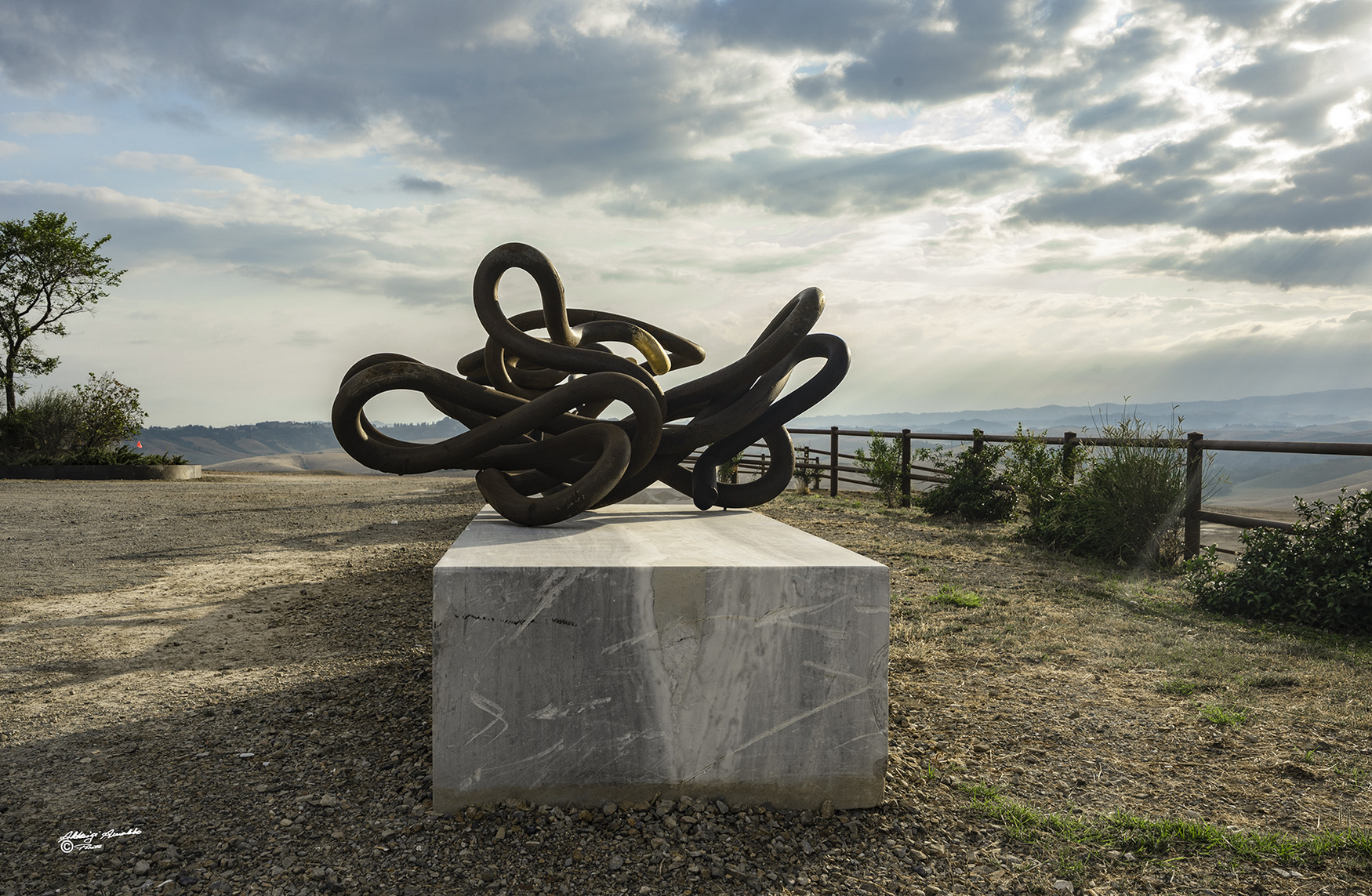 Notevole il contrasto tra le rigide forme del monolito e la sinuosità della struttura sovrastante.Ottima la luce.Immagine molto bella. Buona serata,Sergio.