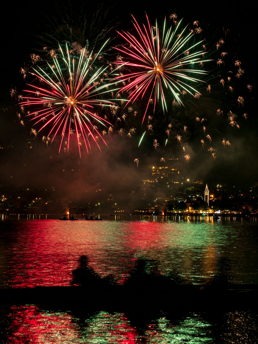 La foto è ben fatta, i colori molto piacevoli, così come (ovviamente) i fuochi d'artificio e le sagome dei presenti in movimento: tutto ben gestito.