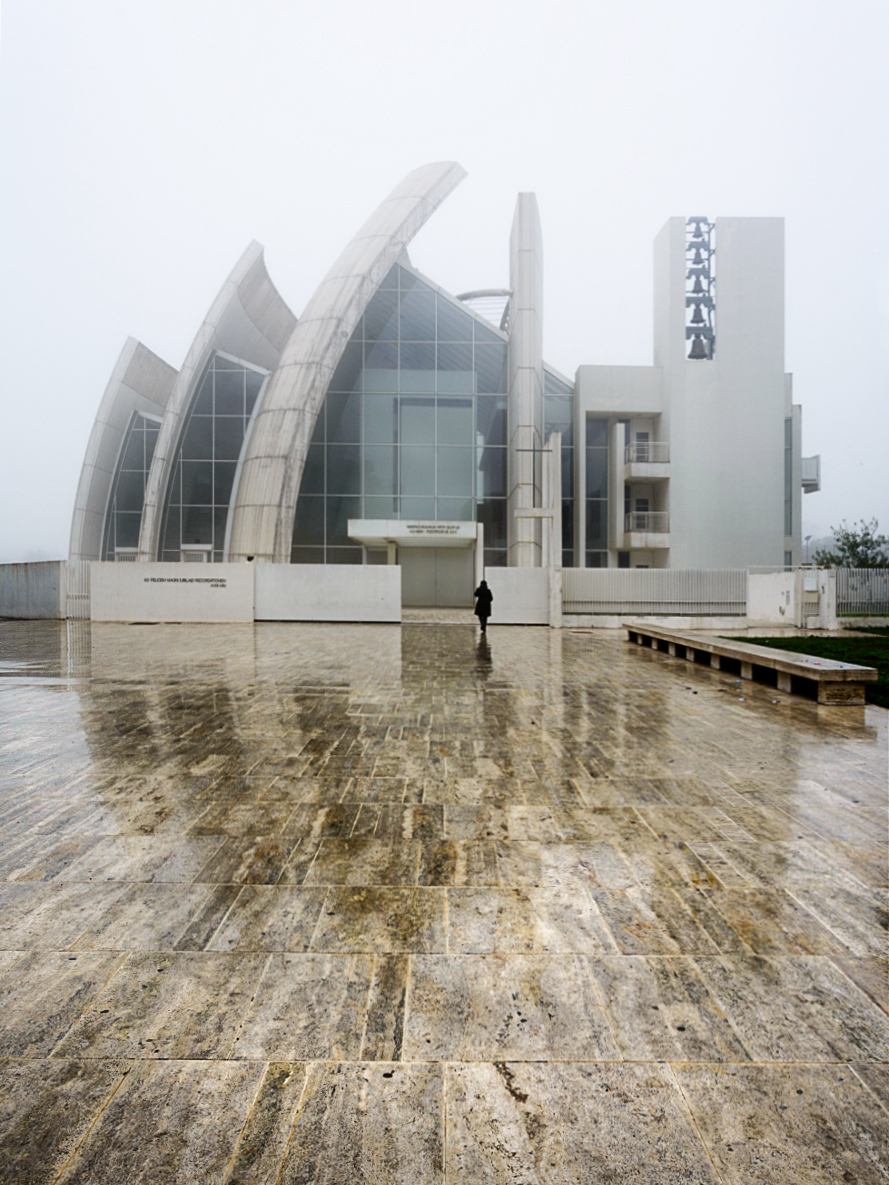 Riguardo la pendenza posso dire che la struttura presenta un "problema". Io solitamente privilegio i rilievi orizzontali della vetrata, e così facendo si ha una sensazione di leggera pendenza nella parte bassa. Nella tua versione, correttamente aggiustata in tal senso, la vetrata mostra una pendenza a destra.