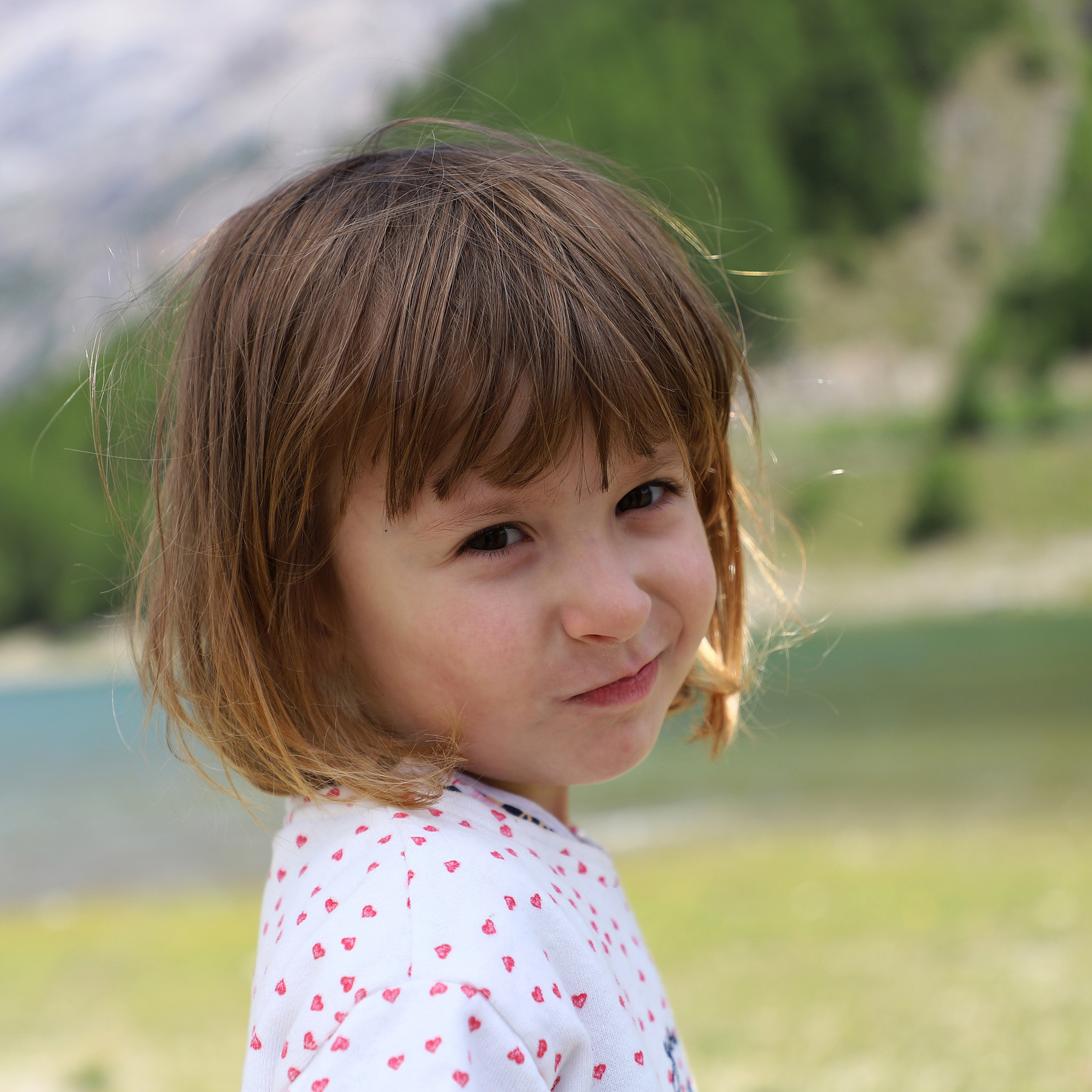 Un bel ritratto colto al volo e per questo simpatico e spontaneo, la bimba è bella e simpatica e forse anche un poco biricchina 😀.