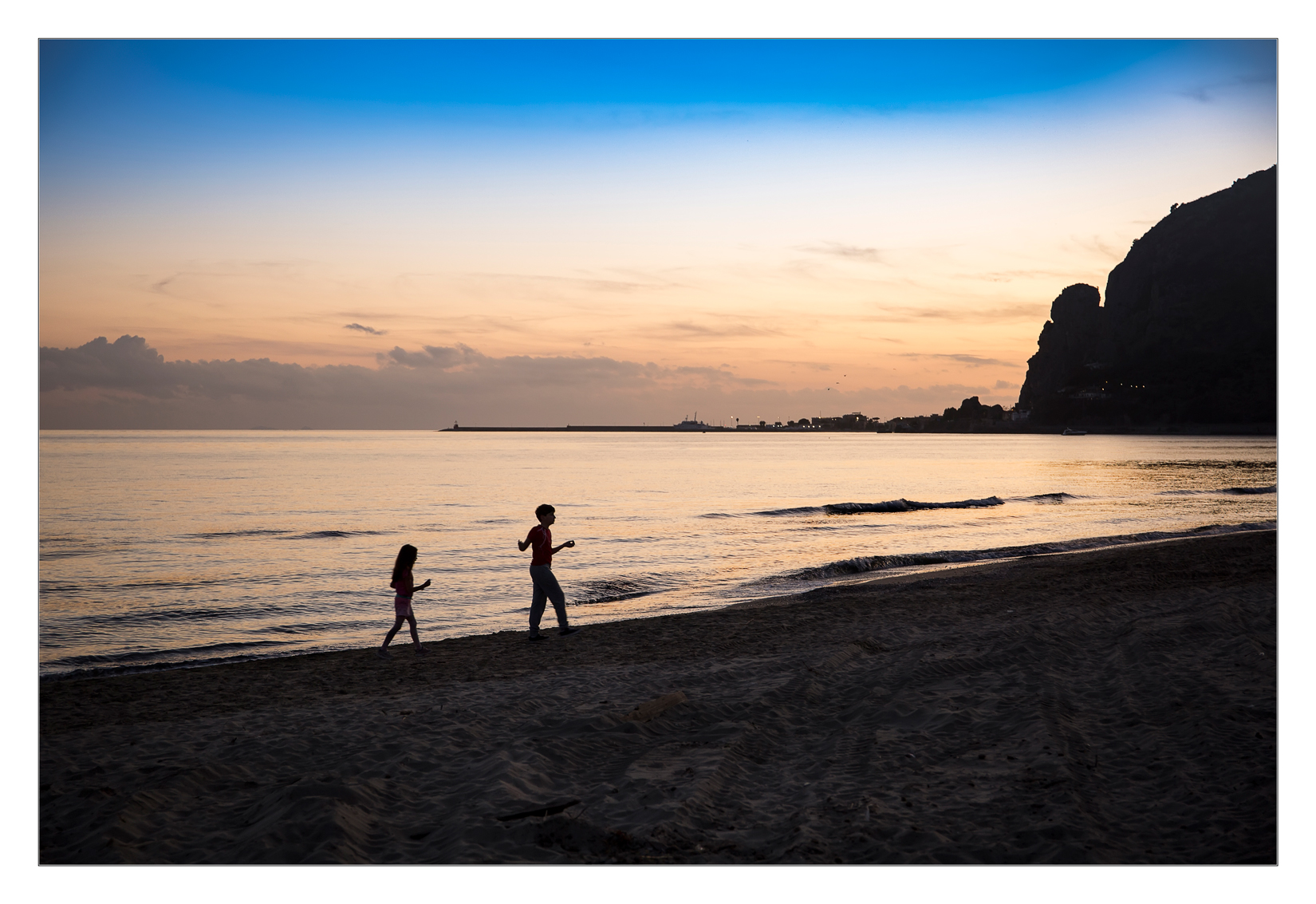 Le ultime incursioni sulla spiaggia prima del freddo inverno.Bellissime le due piccole sagome in controluce,ottimi colori e composizione. Ciao