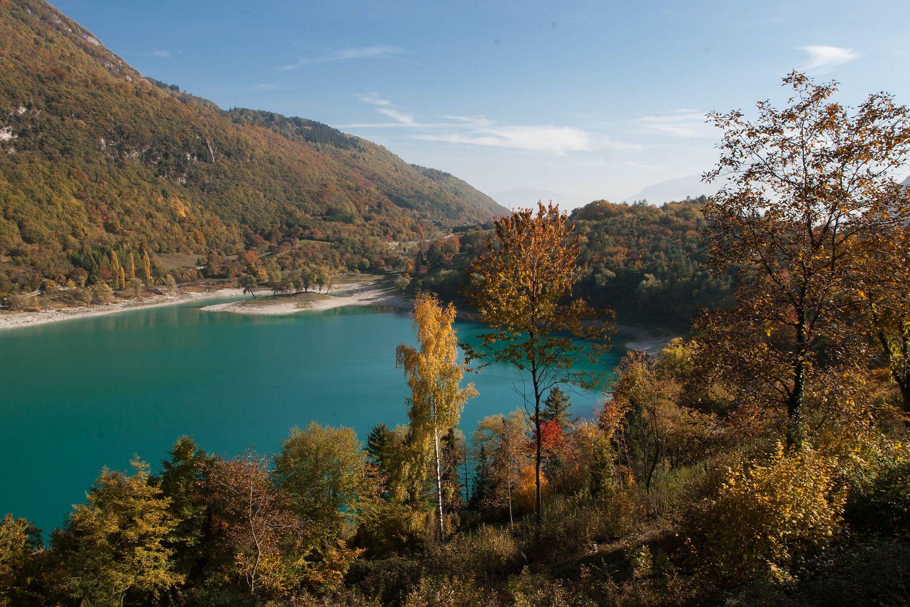 Sempre bellissimo il lago di Tenno anche con poca acqua come in questo periodo. Trovo che la luce dura abbia un po' appiattito il rigoglio dei colori autunnali che restano comunque molto belli. Stona un pochino anche l'albero tagliato sulla dx.