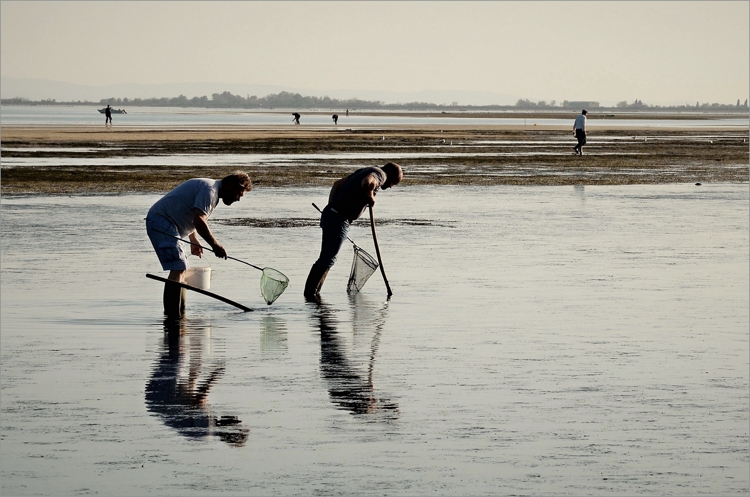 Bellissima immagine di lavoro, ottima la scena ripresa con la postura dei due cercatori ed il loro riflesso...complimenti