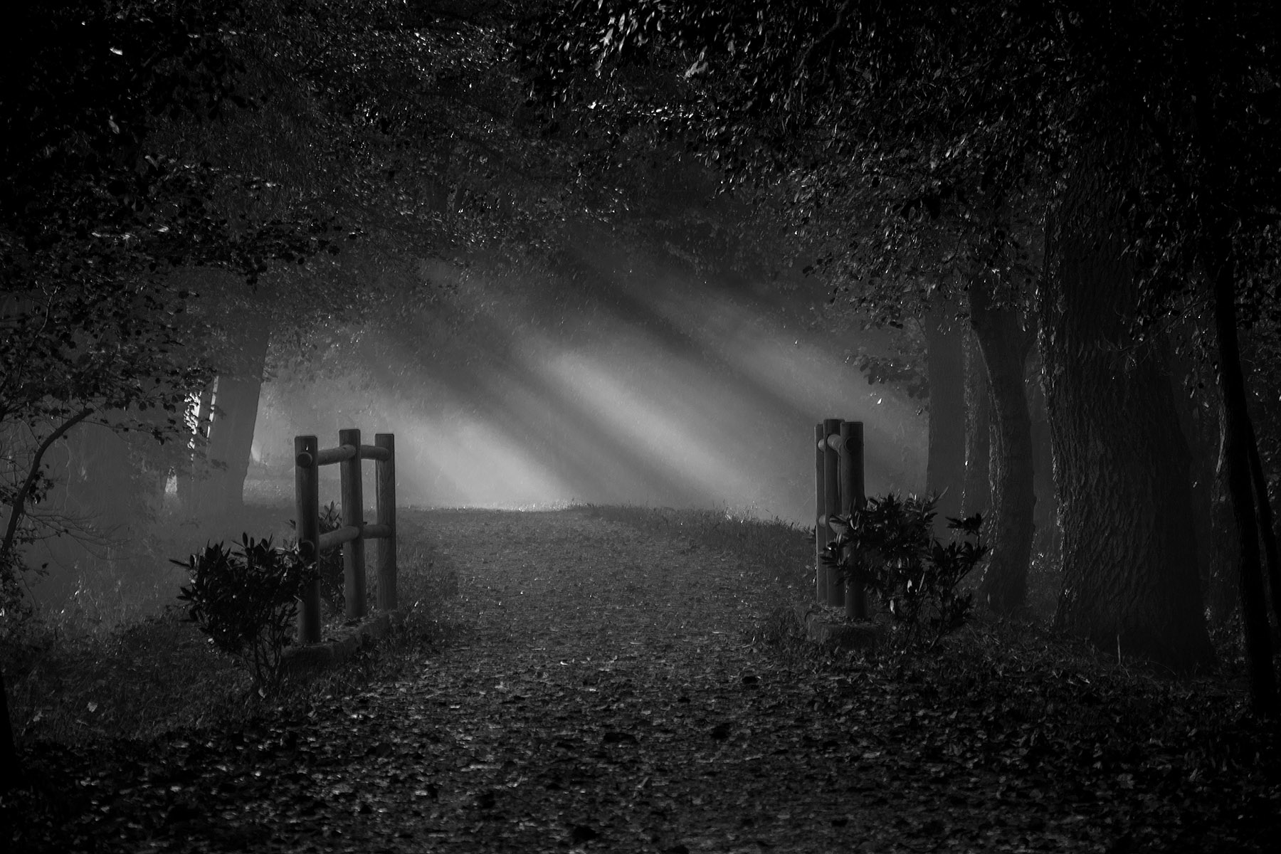 Immagine che definirei evocativa. Cupa e trafitta da queste lame di luce che illuminano il sottobosco.