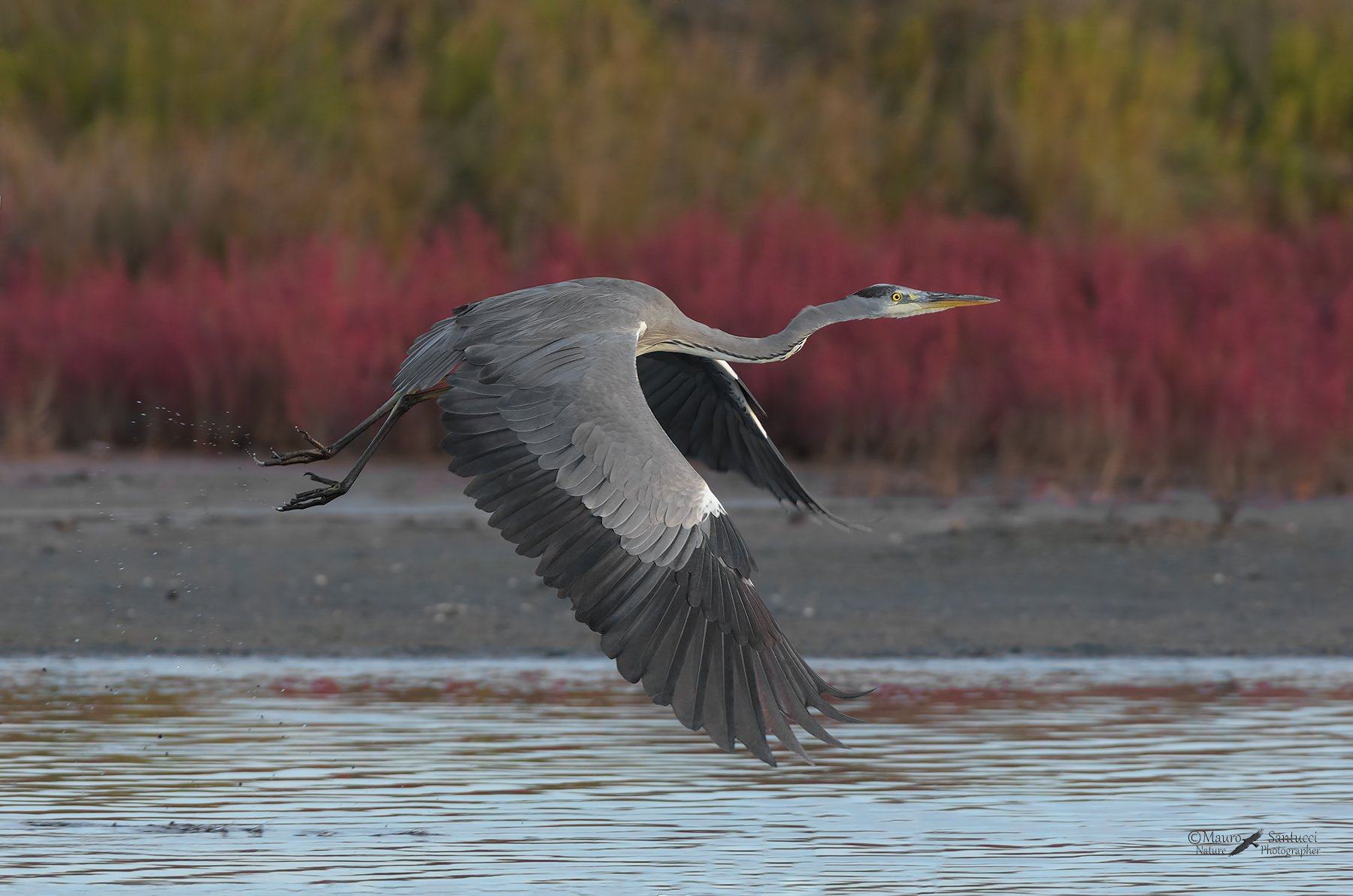 Molto bello questo scatto. La partenza dell'airone è ben catturata, il soggetto si stacca sufficientemente dallo sfondo (spesso con sfondi così variabili è facile "perdere" il soggetto,in parte almeno, su sfondo con toni simili, qui per fortuna o capacità non succede), ben immortalato e nitido, le gocce d'acqua rilasciate dalle zampe a completare il tutto.