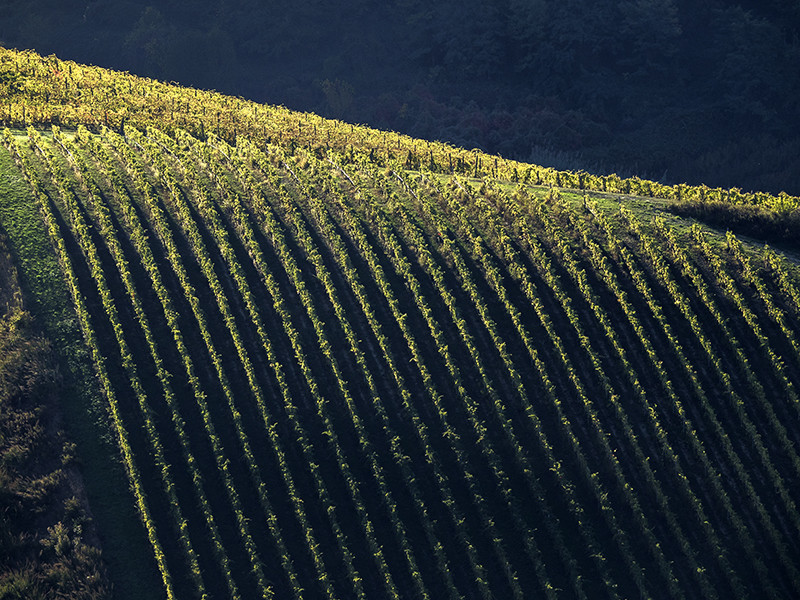 I filari, ben illuminati, danno dinamicità all'immagine.