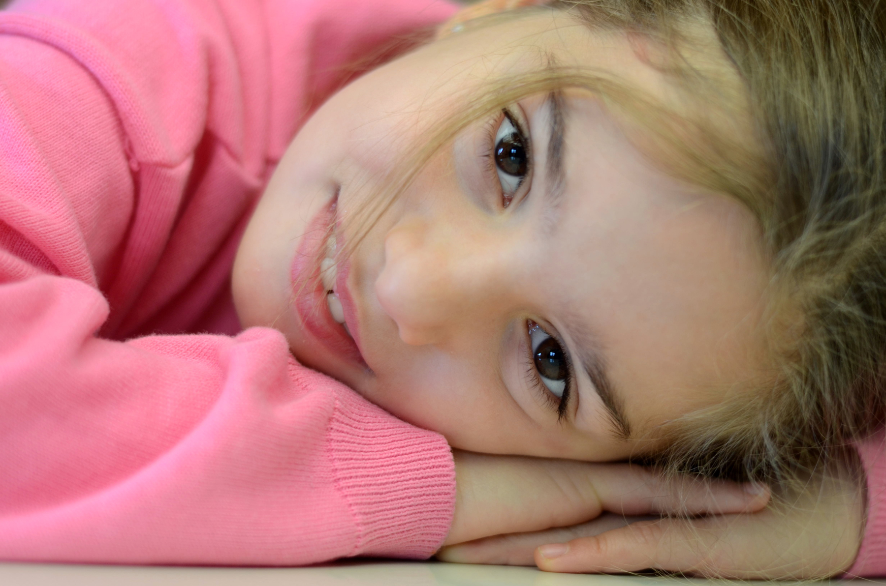 Quanta dolcezza in questi occhietti! Una tenera ripresa valorizzata dal richiamo cromatico fra il rosa della felpa e le labbra.