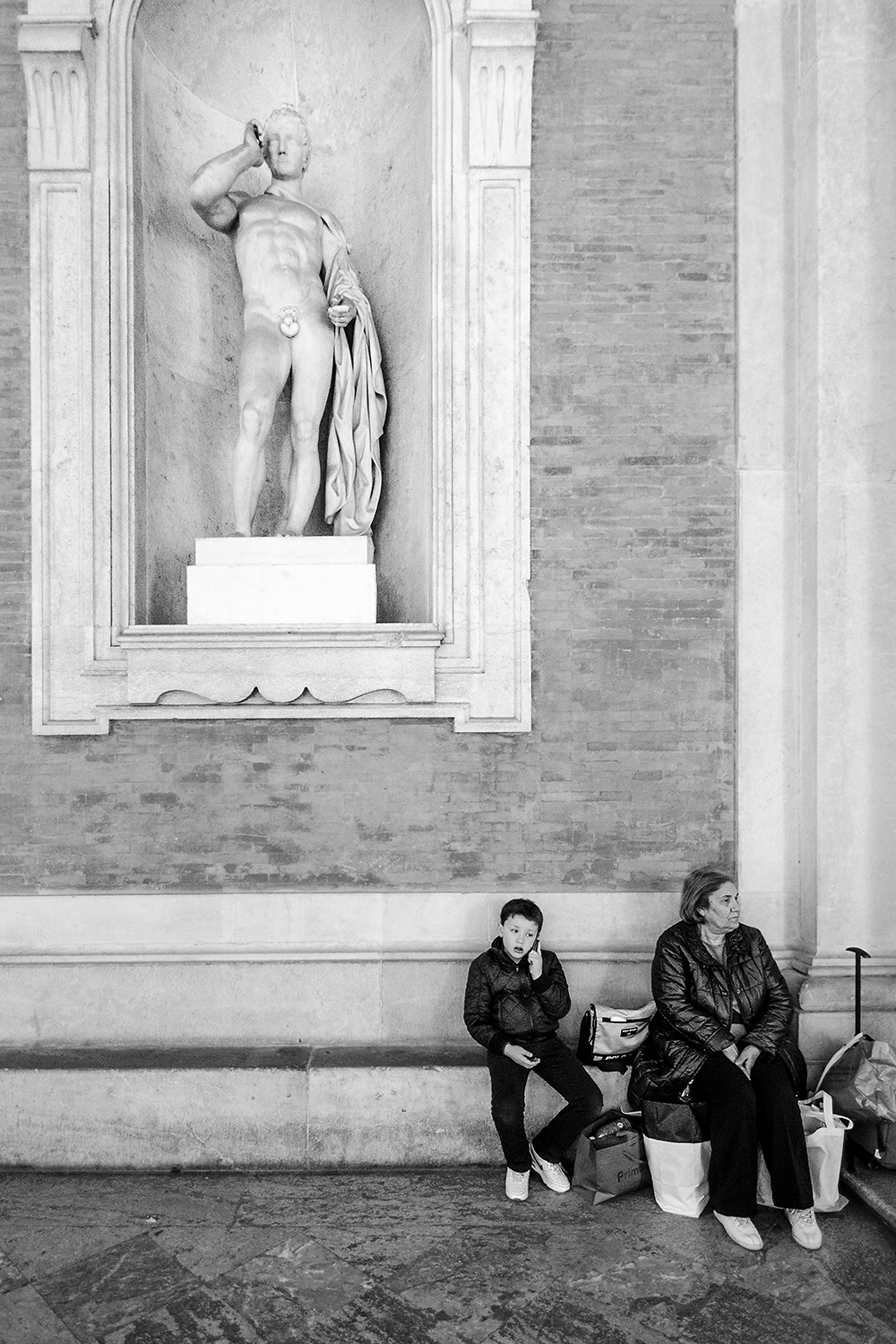 ottima street, perfetto il momento colto, il bambino e la statua con il braccio nella stessa posizione. Che anche le statue siano passate allo smartphone ?