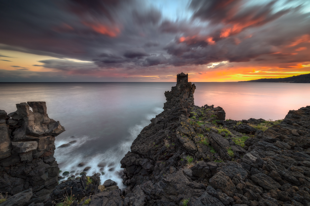 Tramonto alla torretta di santa Tecla, borgo marinaro nei pressi di Catania.