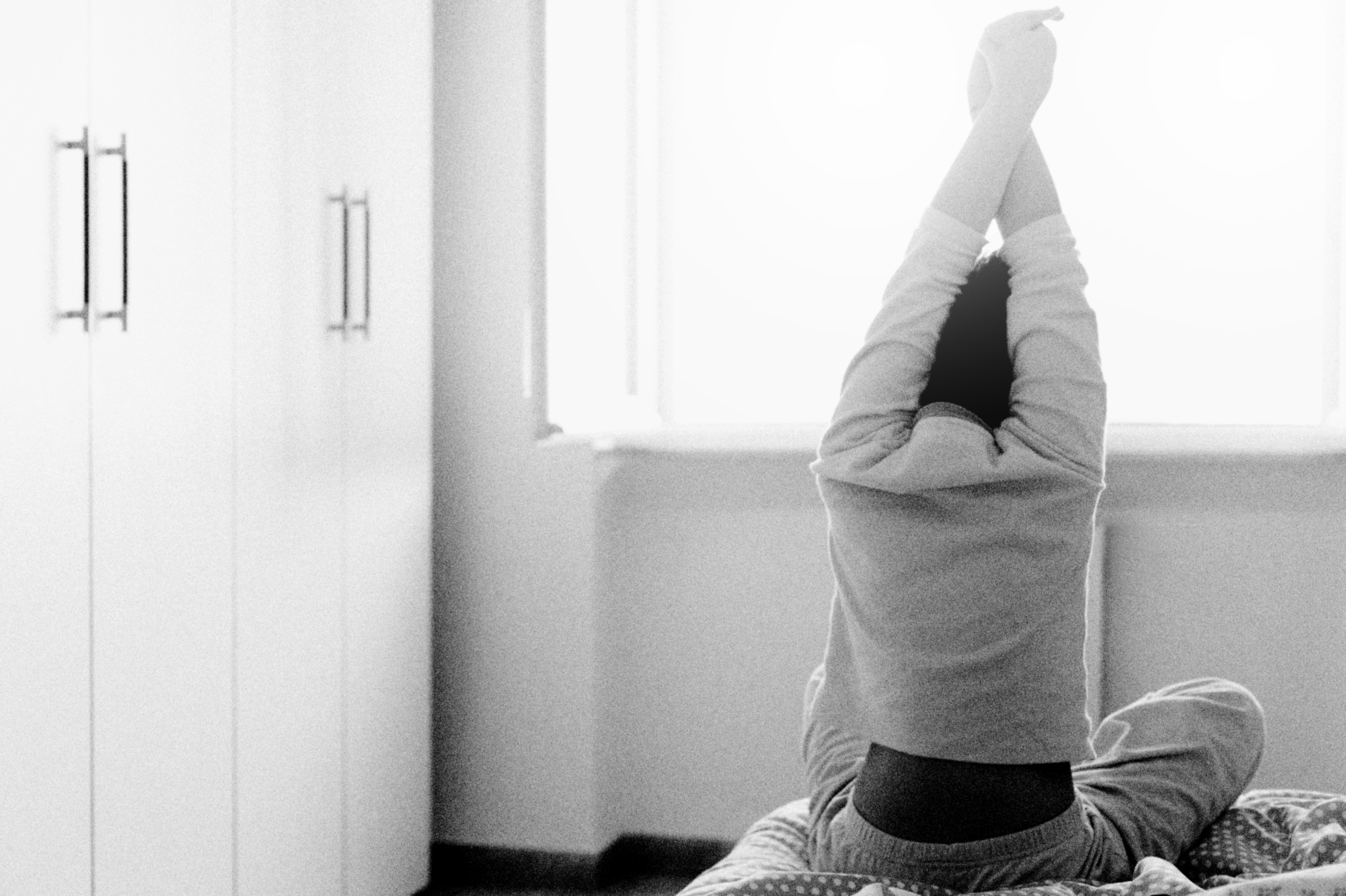 A una prima osservazione fa pensare al pigro stiramento mattutino, poi vien fuori che è seduto ai piedi del letto, che la finestra è aperta, che ti gira le spalle,
